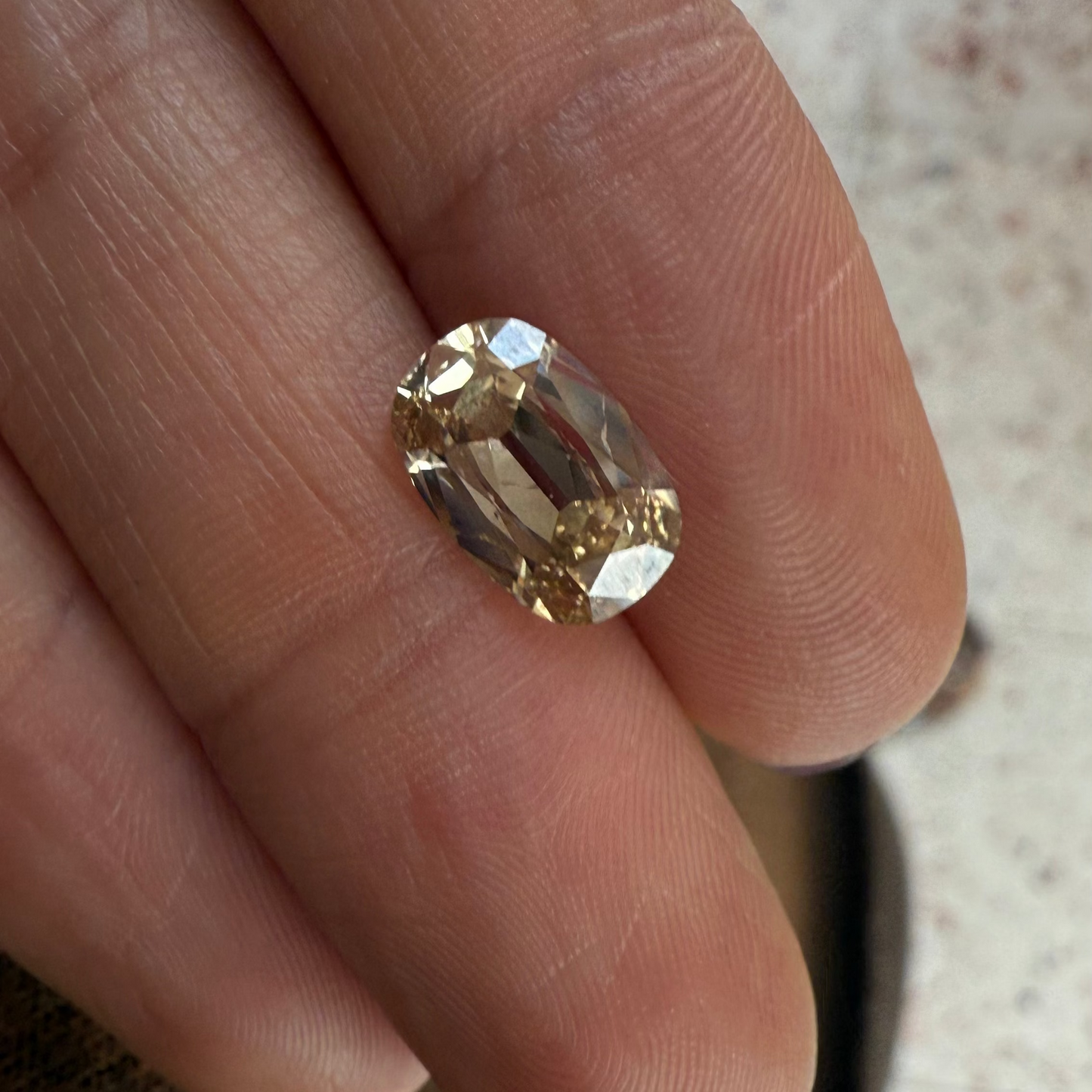 Diamante Old Mine Cushion Alargado Champagne de 2.6ct