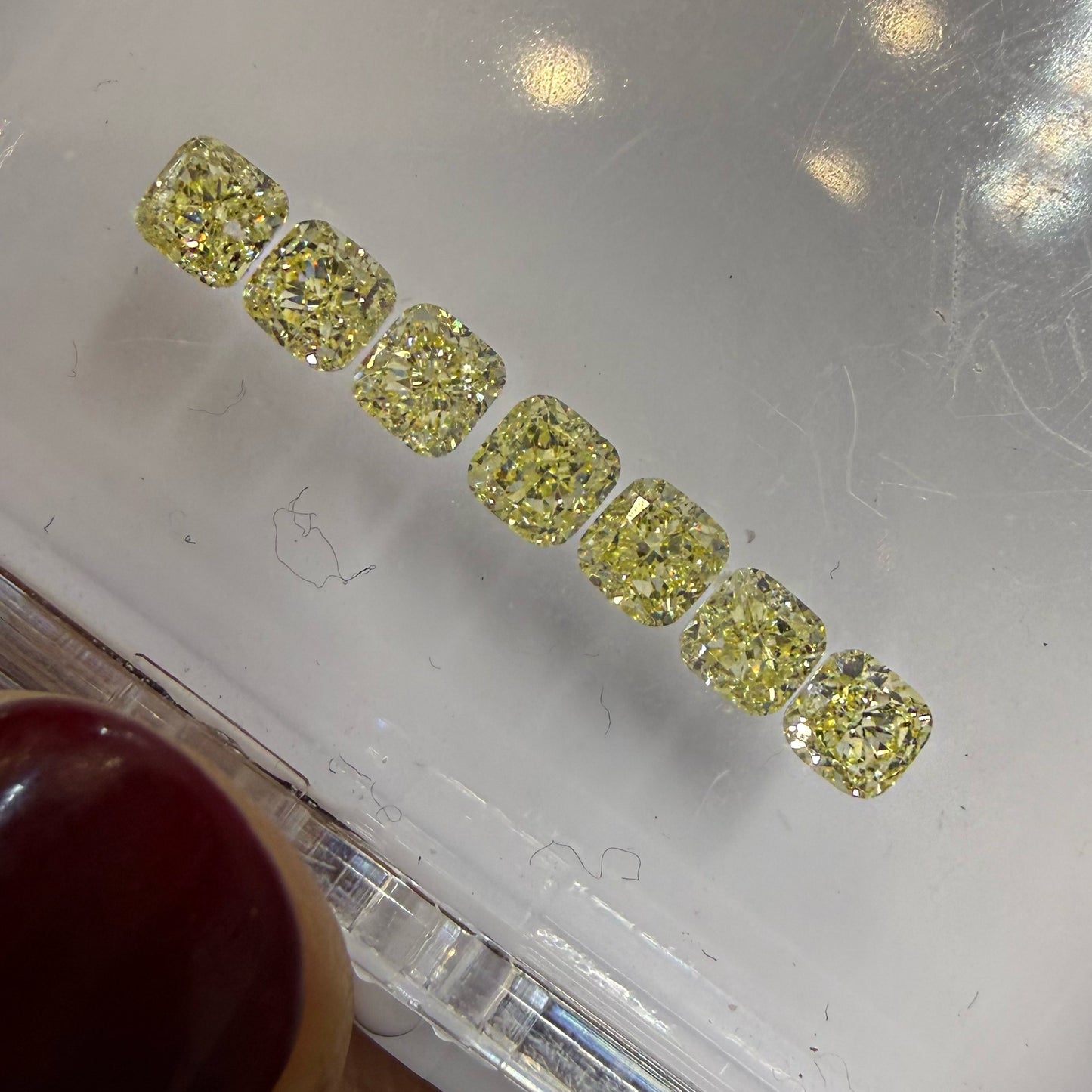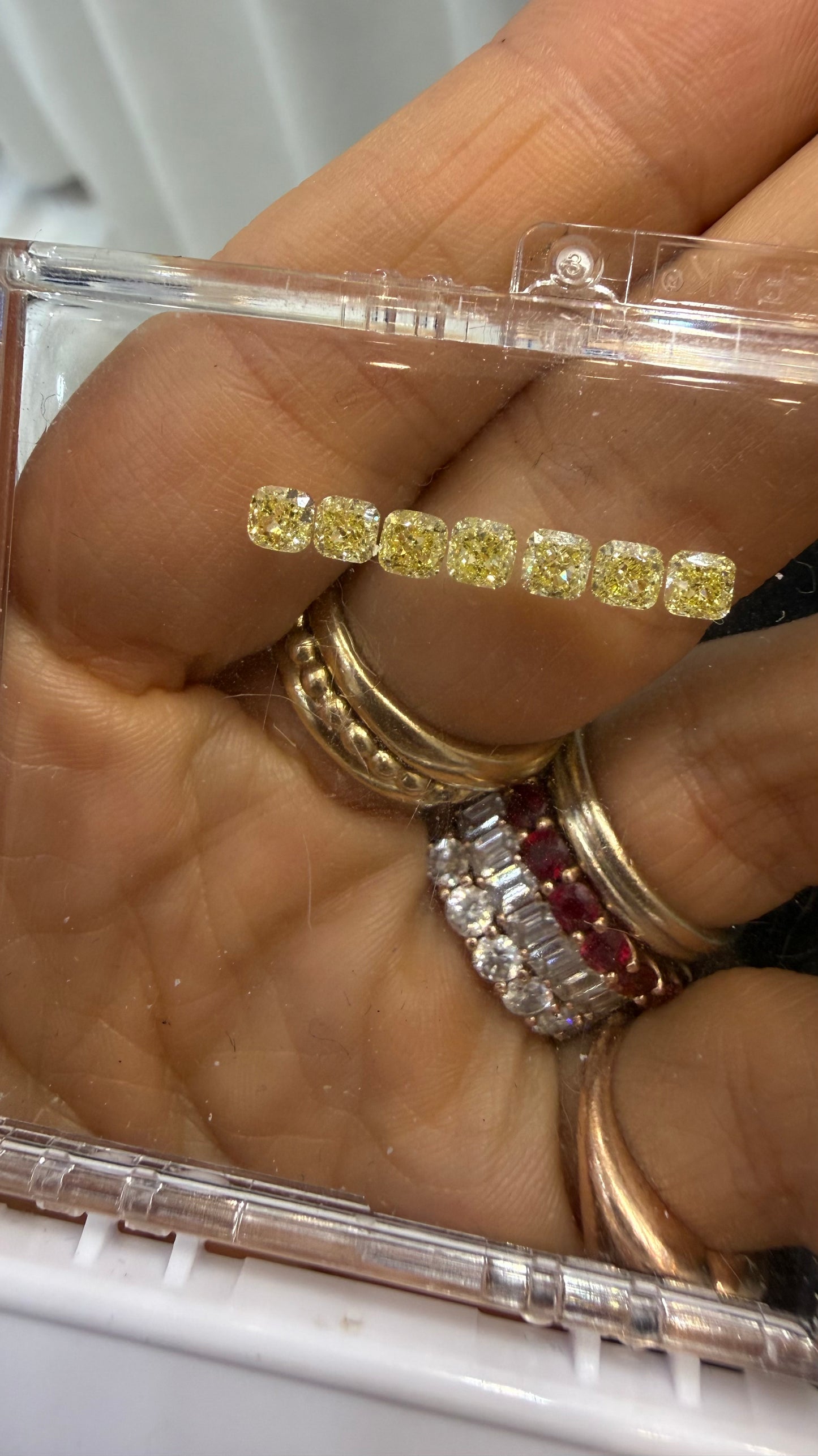 Haremos media churumbela con 8 diamantes cushion amarillos de 0.25ct cada uno, resultando en un total de 2ct.